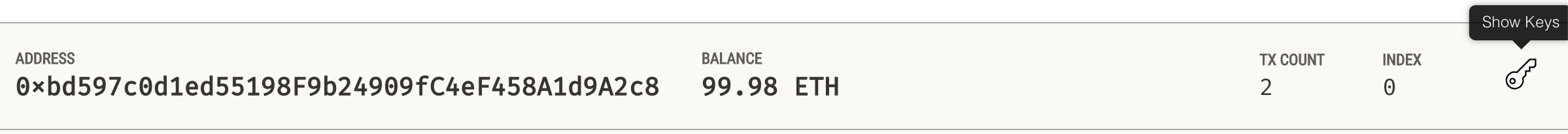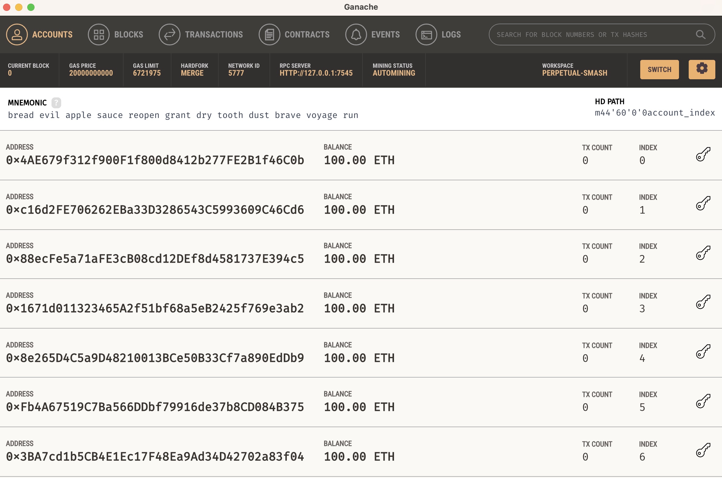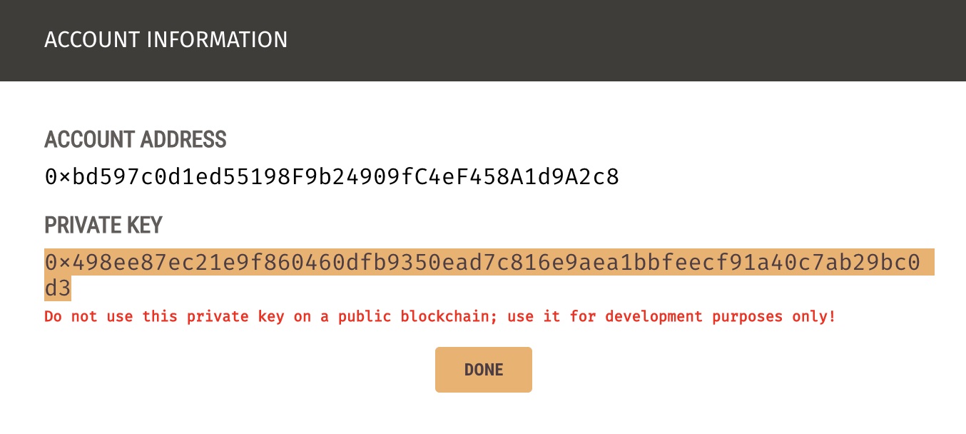 1. On Ganache, click on the key symbol of the first account: