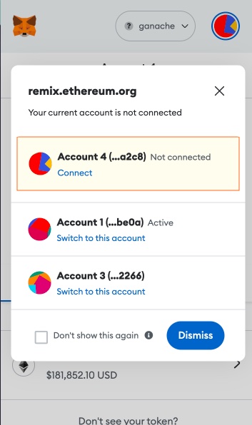 2. On Metamask, connect your Ganache account to the Remix IDE.