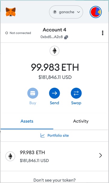 4. Your Metamask is connected to Ganache, and you should have access to the newly imported account.