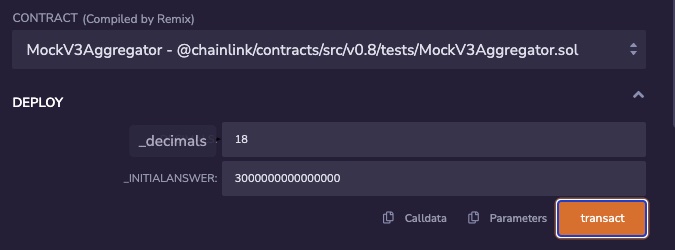 4. Click on transact to deploy the MockV3Aggregator contract.