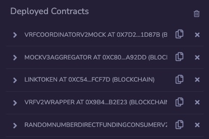 6. Once deployed, you should see the RandomNumberDirectFundingConsumerV2 contract under Deployed Contracts.
