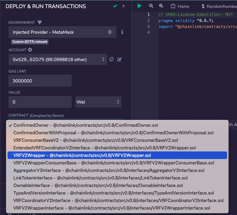 2. Under DEPLOY & RUN TRANSACTIONS, select VRFV2Wrapper.